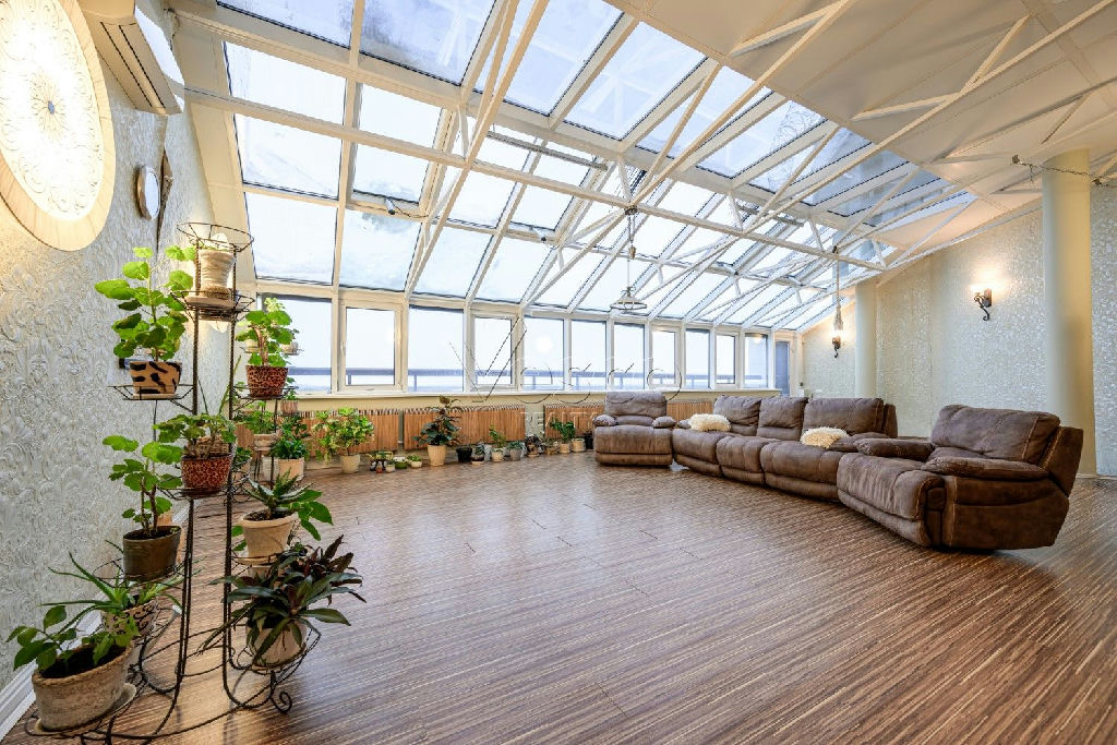 Уникальный зимний сад с большими балконами и потрясающими видами на панораму Москвы, реку, Серебряный бор! Свободное пространство 90 кв.м позволит реализовать любые задумки: вторую гостиную, лаунж-зону, бильярдную, библиотеку, творческую мастерскую и прочее. Есть возможность установить дровяной камин.