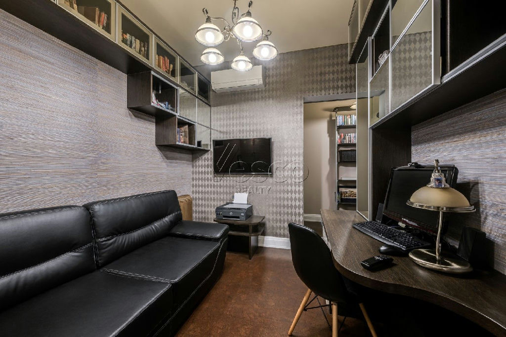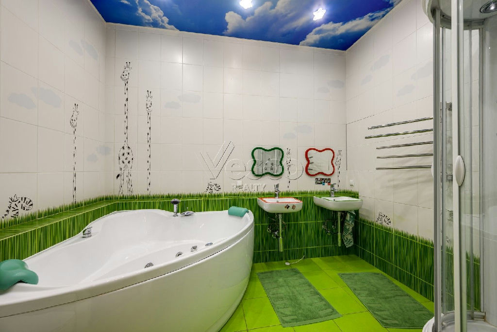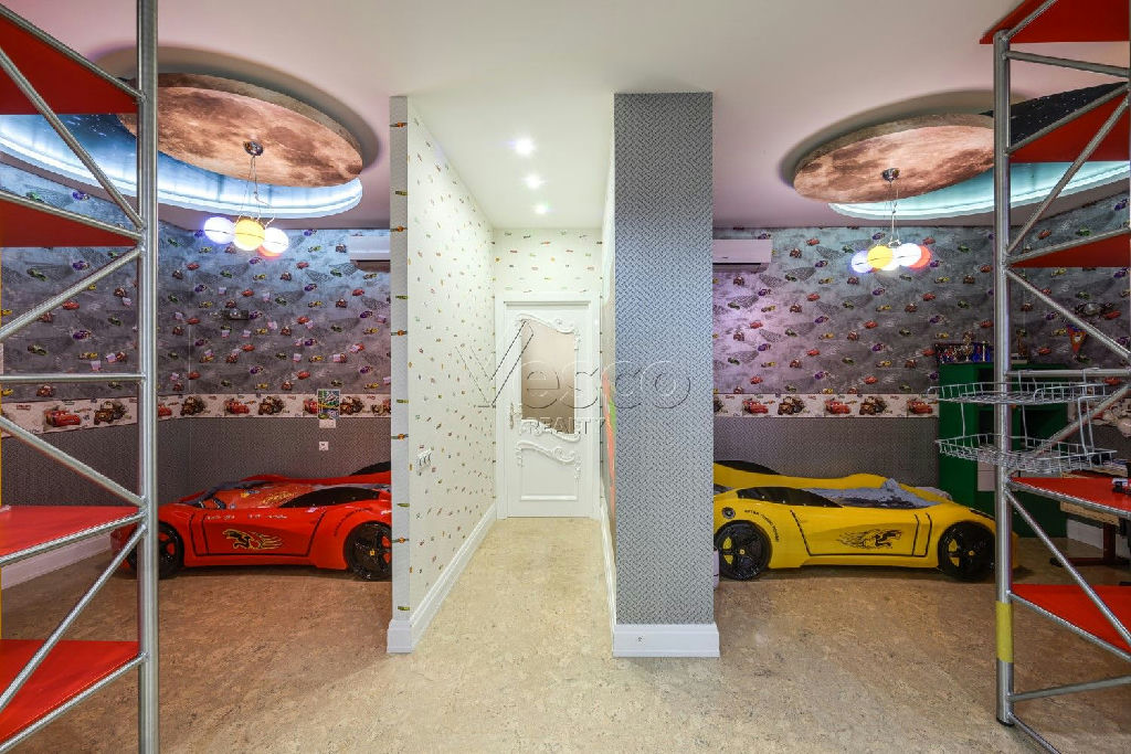 В квартире: 3 полноценных спальни (включая мастер-спальню с гардеробной и с/у), кухня-гостиная с панорамой на Москву, зимний сад, кабинет, коридор с гардеробной комнатой, гостевой с/у, гостевая спальня (или комната няни) и постирочная. При каждой из двух больших детских спален есть отдельный с/у. Одна из спален 53,6 кв.м и легко зонируется для 2-х детей и остается игровая с рабочей зоной.